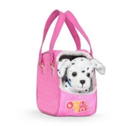 Adopt your very own pet Dalmatian and travel together with the Our Generation Hop In Dog Carrier! This set gives your 18-inch dolls the joy of having a puppy, and the excitement of keeping them by their side on every adventure! Easily put your pup in the dog carrier when it’s time to explore. The inside features faux-fur lining to keep your pups extra comfy, and the straps make it easy to carry on any trip. Once you’ve arrived, clip the leash to the dog collar and enjoy fun walks around the neighborhood. The leash comfortably fits around your 18-inch doll’s hand! Play a game of fetch with the toy ball and hand out treats when your loyal pal is being a good pup. Then place them back inside the dog carrier and head to your next destination! (Dolls sold separately)